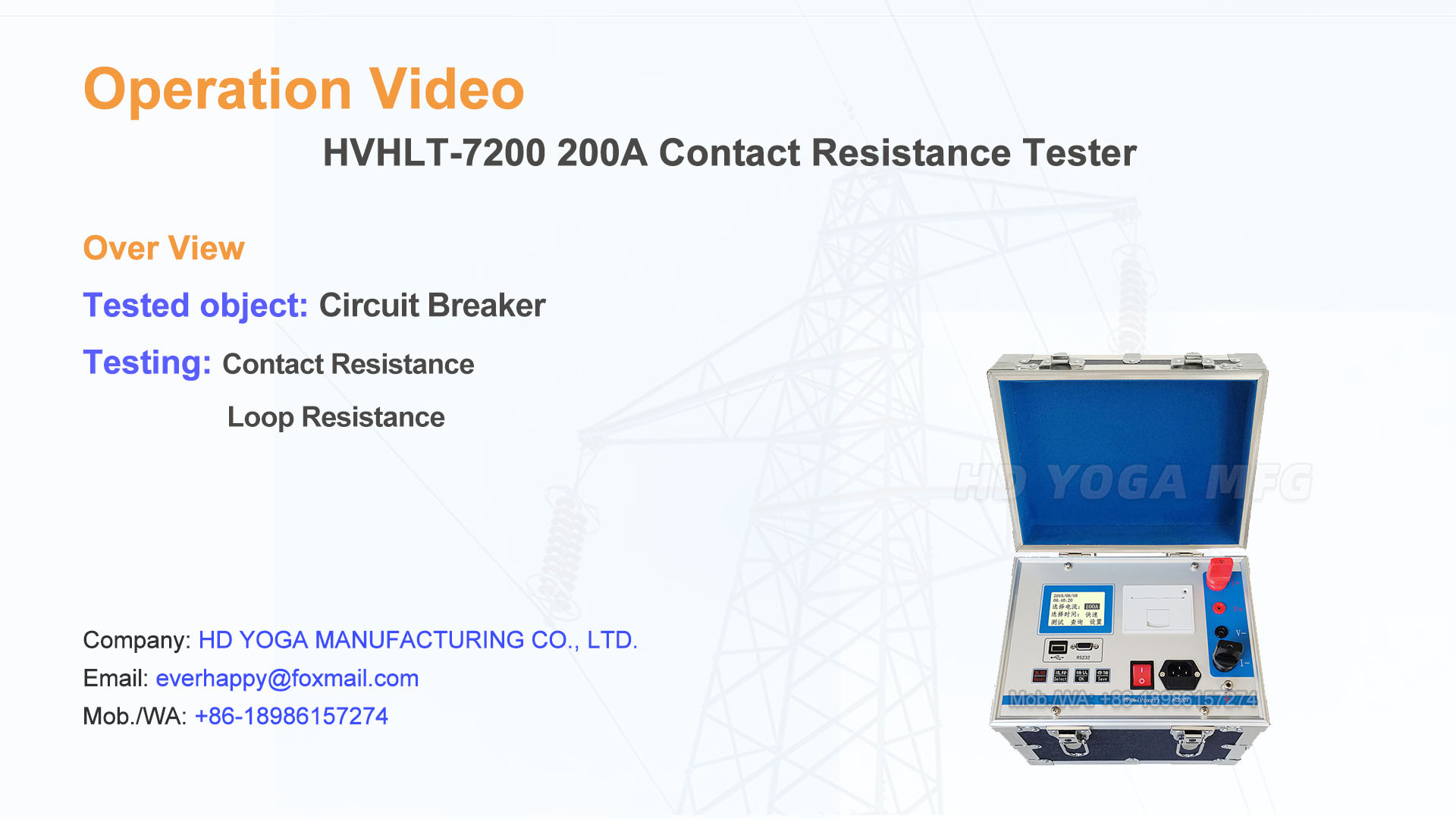 HD YOGA MANUFACTURING CO., LTD. produces market-leading High Voltage Test Equipment/Hipot Tester for proof testing, diagnostic evaluation, and preventive maintenance testing of electrical cables and apparatus designed to operate under medium to high voltage conditions. From transformer and control circuit design, component manufacturing, to assembly, testing, and shipment, we maintain quality control so that you can trust our products and receive expert help in selecting or servicing equipment. We are proud of the work we do to help utilities and electrical contractors keep the lights on and protect critical loads all over the world.